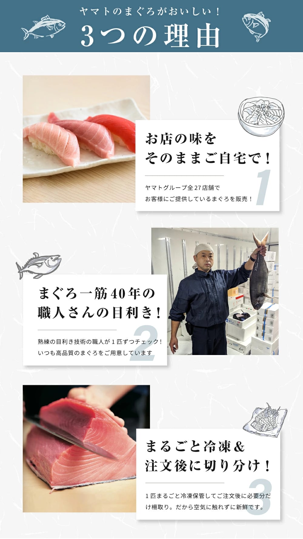 創業以来、水産卸売会社の誇りにかけて、まぐろには徹底してこだわり続けてきました。 天然ものを中心に目利きが吟味したこだわりのまぐろを自信をもってご提供致します。